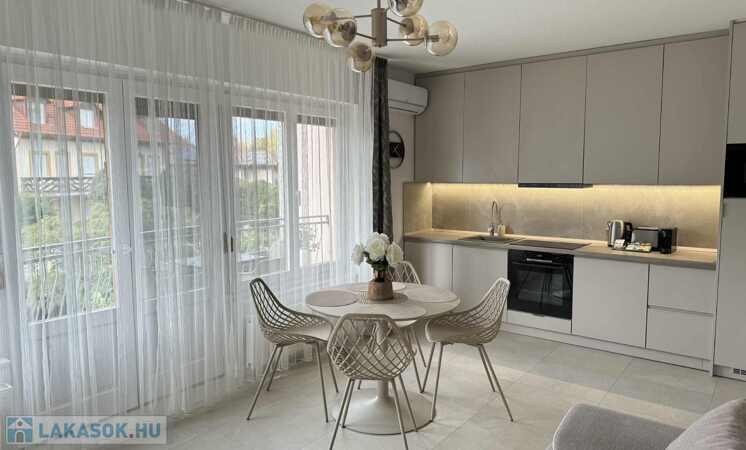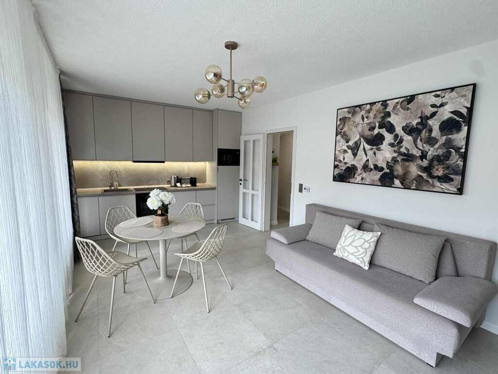 2026.06.15.-ig!!! Balatonlelle központjában, a Balaton parttól 100 m-re, gyönyörű zöldövezeti környezetben rendezett társasház 1. emeletén lévő 51 m2-es felújított iényes lakás kiadó. A lakásban egy szoba + amerikai konyhás nappali amelyből 10 m2-es terasz nyílik, előszoba, fürdőszoba-zuhanyzó-wc helyiségek találhatóak, a fűtése és a melegvíz ellátása kombi gázkazánnal megoldott, továbbá légkondícionáló is van felszerelve, valamint tartozik hozzá az épület zárt udvarában 1 szgk. részére beállóhely is. A lakás teljesen felszerelt, wifi és mindig tv van! A lakást a tulajdonosa legfeljebb 2 felnőtt részére kívánja kiadni, a dohányzás és a kisállat tartása nem engedélyezett! Bérleti díj: 140.000.- Ft/hó + rezsi + 2 havi kaució