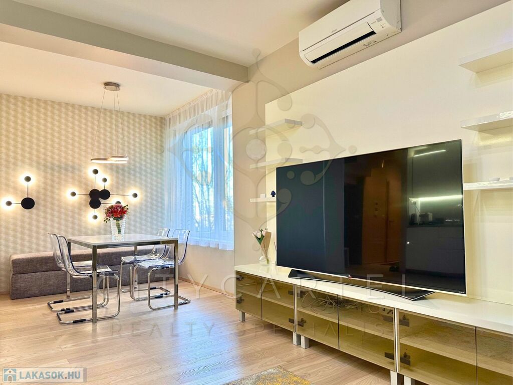 A lakás 2023-ban prémium anyaghasználattal és modern technológiával újult meg.