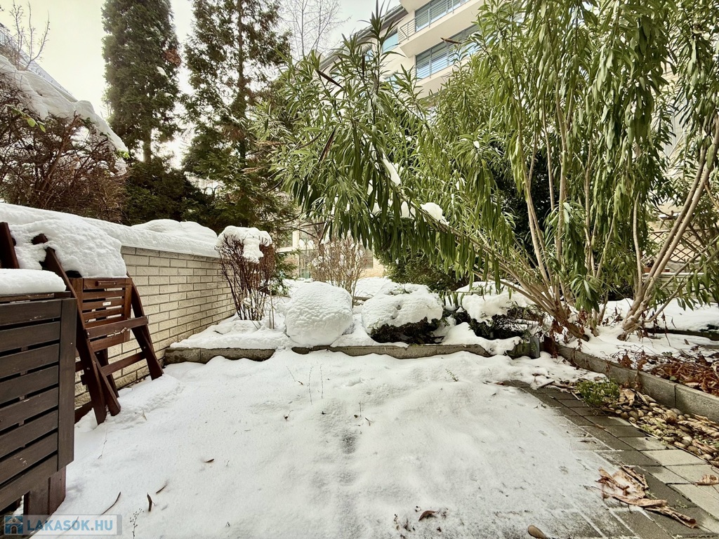 A lakás zárt, gondozott belső kertre néz, ami nemcsak nyugalmat és zöld látványt biztosít, hanem a földszinti elhelyezkedés ellenére kiemelkedő biztonságérzetet is nyújt.