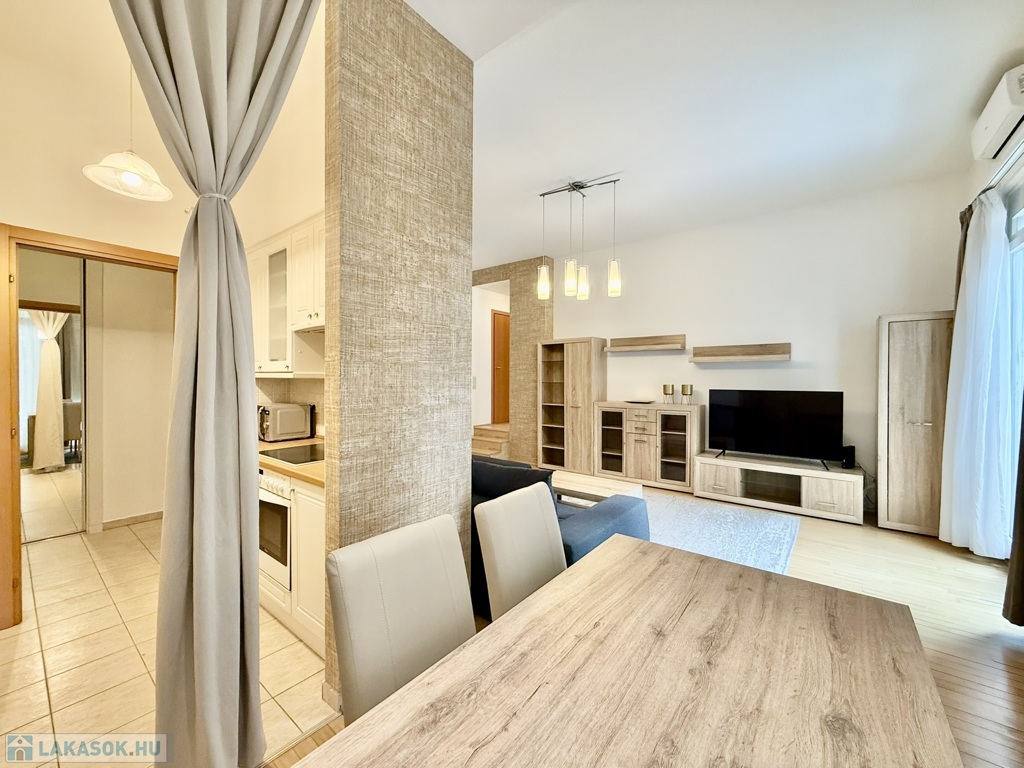 Az ingatlan újszerű állapotú, teljesen bútorozott és gépesített, klimatizált, így azonnal, kényelmesen birtokba vehető.