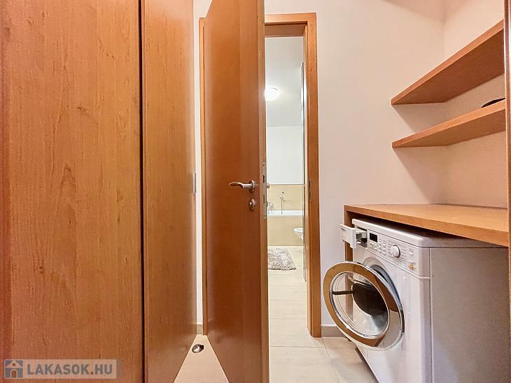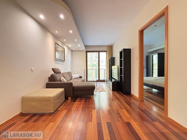 Az erkély a csendes belső udvarra néz, így a város közepén is nyugalom várja az új tulajdonost. A ház szolgáltatásai – konditerem, szauna, jakuzzi – tovább növelik a mindennapi komfortot.