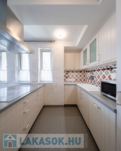 A II. kerület egyik legkedveltebb részén, a Rózsadomb zöldövezeti környezetében kiadó ez a 108 m²-es, felújított, bútorozott, duplakomfortos lakás, erkéllyel, két teremgarázshellyel és tárolóval.