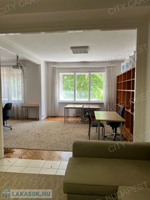 A II. kerületben, a Budagyöngye bevásárlóközpont szomszédságában, egy klasszikus ház első emeletén kiadó egy 90 nm-es, 2,5 szoba + hallos, nagyon világos, élhető terekkel, nagy belmagassággal bíró, jó állapotú lakás, 4 nm-es, belső kertre néző erkéllyel. A lakás elrendezése: 2 nagy, egybenyitott szoba, 25 és 20 nm-es, egy 12 nm-es félszoba, egy 18 nm-es hall, ablakos konyha, jó méretű ablakos kamra, kádas fürdőszoba wc-vel, vendég toalett, erkély. A lakás fűtése házközponti, a közös költség 22.000 Ft/hó. A belmagasság 3 méter, a tájolás K-i. Korábban irodaként használták, irodabútorokkal berendezett, amik hasonló célú hasznosítás esetén maradhatnak az ingatlanban. A környék kiváló, a 17 lakásos társasházról házmester gondoskodik. Az ingatlan azonnal költözhető. Vállalkozásnak, irodának, vagy családi otthonnak egyaránt megfelelő az ingatlan.