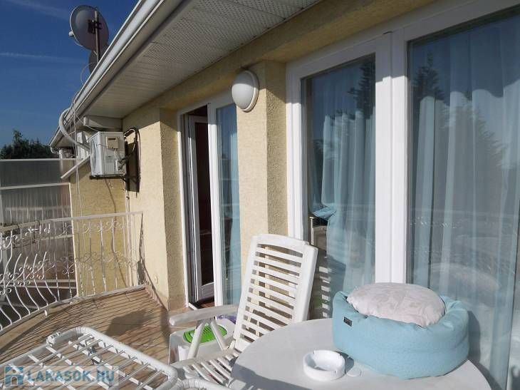 Erkélyes nappalival, klímával, fűthető autólejáróval. Szép panoráma van a város felé. A lakáshoz 1 garázshely tartozik.