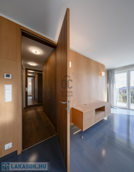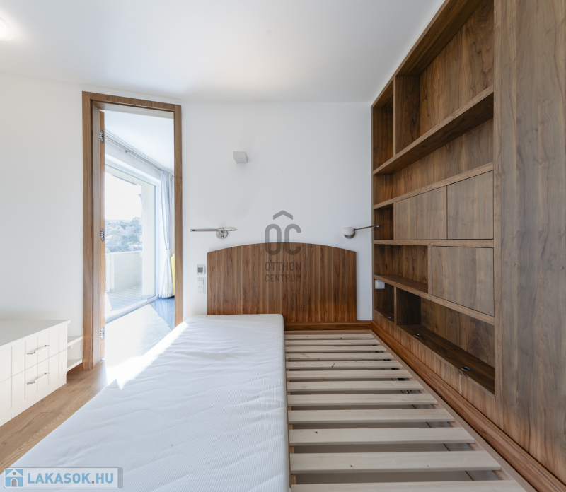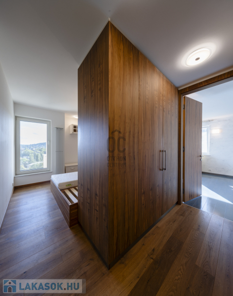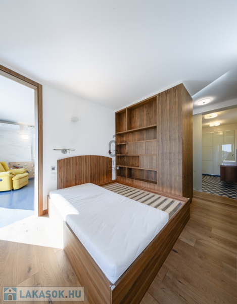 Az ingatlan részben bútorozott. Mindenhol magas minőségű asztalos által készített beépített bútor található, nappaliban kőrisfa furnér, a hálószobában oliva furnér. Valamint tartalmazza az ágykeretet is.