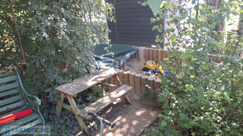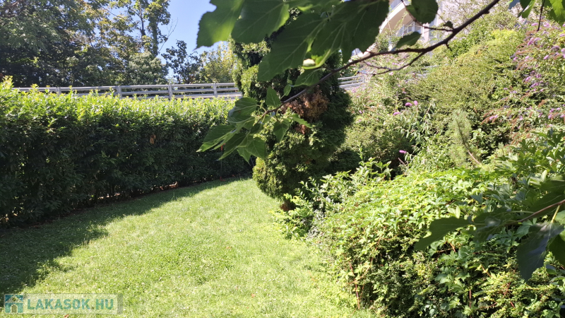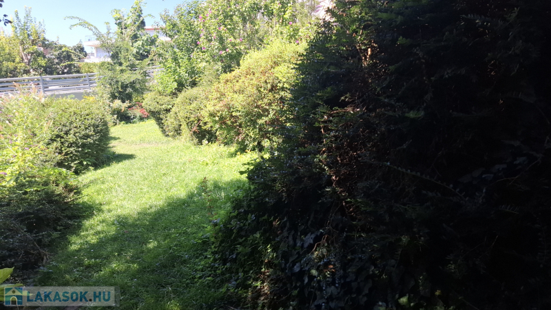 A társasház ápolt kertje tökéletes hely a pihenésre, játékra a kicsiknak.
