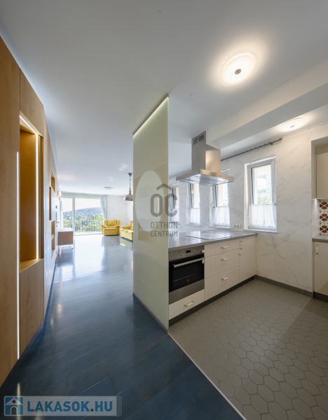 A nappaliból csodás panoráma tárul elénk, amit akár a nagy méretű erkélyről is csodálhatunk.