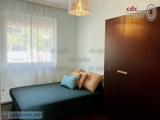 II. kerületben, Csatárka és Pálvölgy határában egy kisforgalmú, csendes utcában kiadó egy kis lakóközösségű társasház első emeleti lakása. Luxus minőségben felújított, világos, jó hangulatú, minőségi konyhával, ízlésesen berendezett. A 95 m2-es, nappali + 2 hálószobás, teraszos ingatlan rendkívül jó beosztású. A hálószobák külön nyílnak, az amerikai konyhás nappalihoz tartozik a 10 m2-es, kertre néző, panorámás terasz. A fürdőszobában kád és zuhanyzó is van, valamint egy wc és egy bidé. Közvetlen mellette van még egy wc kézmosóval. A lakás része még egy ablakos gardróbhelyiség is. Az ingatlan riasztóval ellátott, légkondícionált, fűtése cirkós, a nappali kandallós. A közös használatú kert folyamatosan gondozott, egy rendszeresen tisztított medencével is rendelkezik, melyet a lakók közösen használhatnak, csakúgy, mint a grillezőt. Parkolási lehetőség van a teremgarázsban, a kertben van egy kocsibeálló és még egy a ház előtt is. Az ingatlan minimum 1 évre kiadó, 2 havi kaució szükséges. A rezsi fogyasztás alapján fizetendő, a közös költség 100 Euro. Kisállatot nem lehet hozni, a dohányzás tilos az ingatlanban.