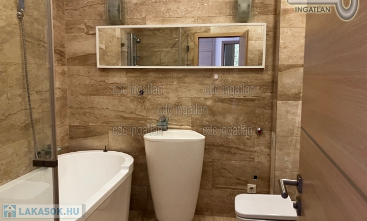 II. kerületben, Csatárka és Pálvölgy határában egy kisforgalmú, csendes utcában kiadó egy kis lakóközösségű társasház első emeleti lakása. Luxus minőségben felújított, világos, jó hangulatú, minőségi konyhával, ízlésesen berendezett. A 95 m2-es, nappali + 2 hálószobás, teraszos ingatlan rendkívül jó beosztású. A hálószobák külön nyílnak, az amerikai konyhás nappalihoz tartozik a 10 m2-es, kertre néző, panorámás terasz. A fürdőszobában kád és zuhanyzó is van, valamint egy wc és egy bidé. Közvetlen mellette van még egy wc kézmosóval. A lakás része még egy ablakos gardróbhelyiség is. Az ingatlan riasztóval ellátott, légkondícionált, fűtése cirkós, a nappali kandallós. A közös használatú kert folyamatosan gondozott, egy rendszeresen tisztított medencével is rendelkezik, melyet a lakók közösen használhatnak, csakúgy, mint a grillezőt. Parkolási lehetőség van a teremgarázsban, a kertben van egy kocsibeálló és még egy a ház előtt is. Az ingatlan minimum 1 évre kiadó, 2 havi kaució szükséges. A rezsi fogyasztás alapján fizetendő, a közös költség 100 Euro. Kisállatot nem lehet hozni, a dohányzás tilos az ingatlanban.