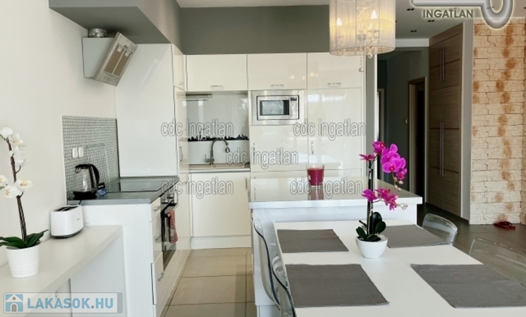 II. kerületben, Csatárka és Pálvölgy határában egy kisforgalmú, csendes utcában kiadó egy kis lakóközösségű társasház első emeleti lakása. Luxus minőségben felújított, világos, jó hangulatú, minőségi konyhával, ízlésesen berendezett. A 95 m2-es, nappali + 2 hálószobás, teraszos ingatlan rendkívül jó beosztású. A hálószobák külön nyílnak, az amerikai konyhás nappalihoz tartozik a 10 m2-es, kertre néző, panorámás terasz. A fürdőszobában kád és zuhanyzó is van, valamint egy wc és egy bidé. Közvetlen mellette van még egy wc kézmosóval. A lakás része még egy ablakos gardróbhelyiség is. Az ingatlan riasztóval ellátott, légkondícionált, fűtése cirkós, a nappali kandallós. A közös használatú kert folyamatosan gondozott, egy rendszeresen tisztított medencével is rendelkezik, melyet a lakók közösen használhatnak, csakúgy, mint a grillezőt. Parkolási lehetőség van a teremgarázsban, a kertben van egy kocsibeálló és még egy a ház előtt is. Az ingatlan minimum 1 évre kiadó, 2 havi kaució szükséges. A rezsi fogyasztás alapján fizetendő, a közös költség 100 Euro. Kisállatot nem lehet hozni, a dohányzás tilos az ingatlanban.