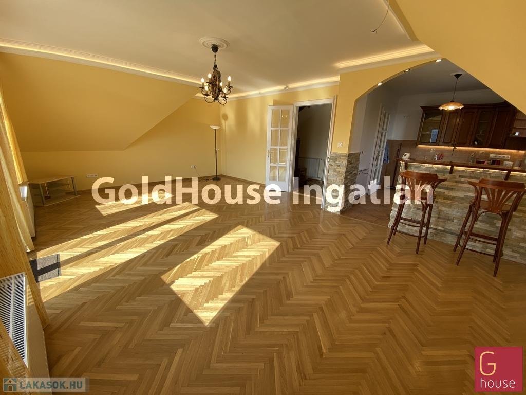 Az ingatlan 3 lakásos társasház legfelső szintjén található. Belső 2 szintes 110 m2 + tetőtér 50 m2-es.