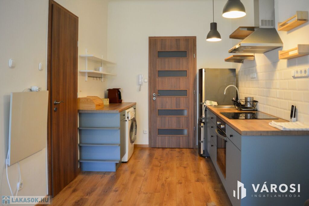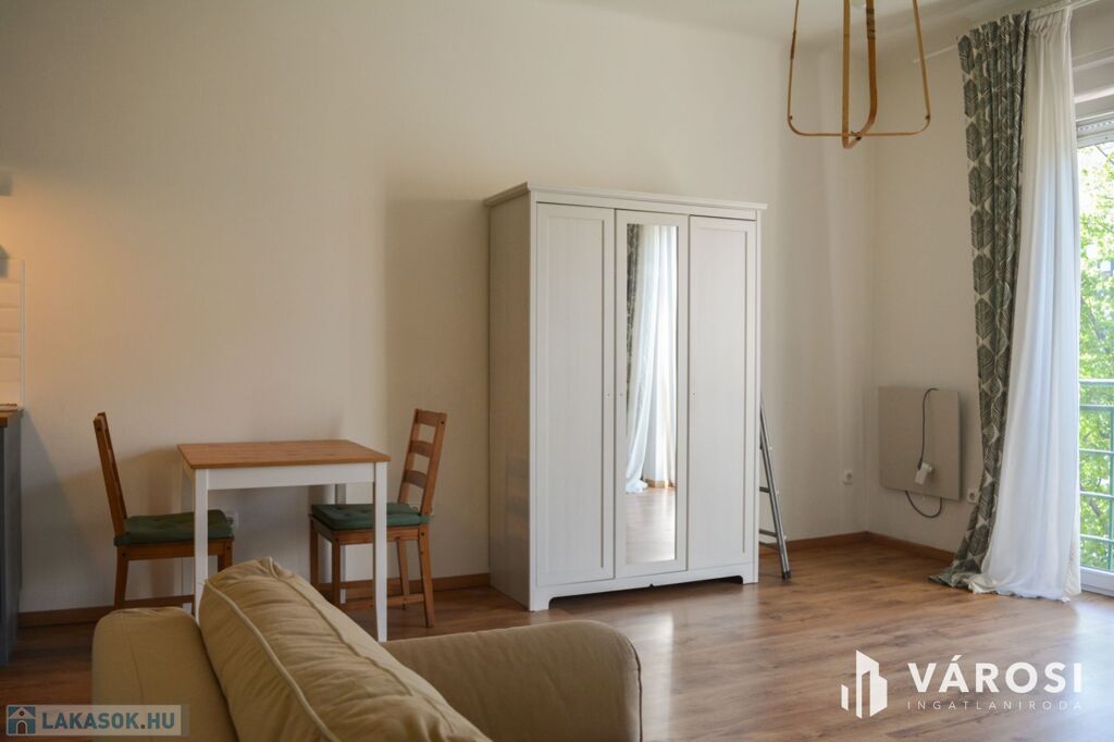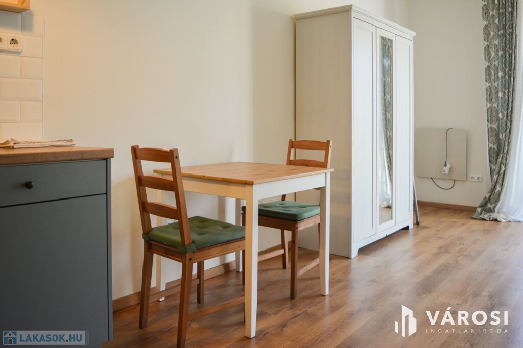 Az újszerűen felújított, és fiatalos bútorokkal rendelkező lakás egy tágas, amerikai konyhás szobából, előszobából és a kádas fürdőszobából áll.