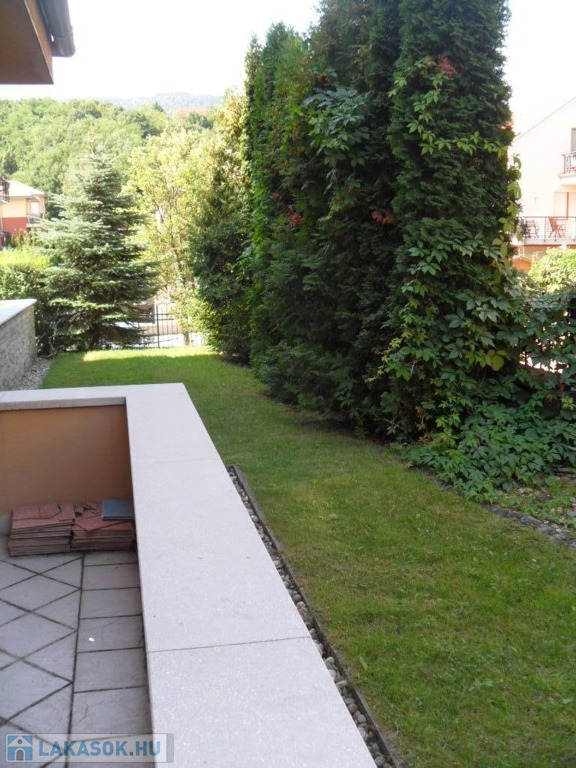 A lakás ablakai és erkélye a ház gondozott, örökzöldekkel és virágokkal beültetett belső kertjére néznek, amelyet kertész ápol. A kert zárt és teljesen védett, így csendes, nyugodt környezetet biztosít.