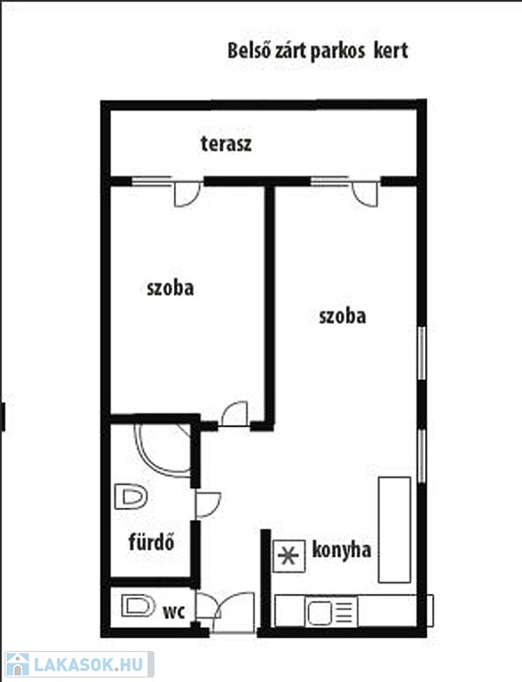  2 szoba, mindkettőből közvetlen kijárat az erkélyre