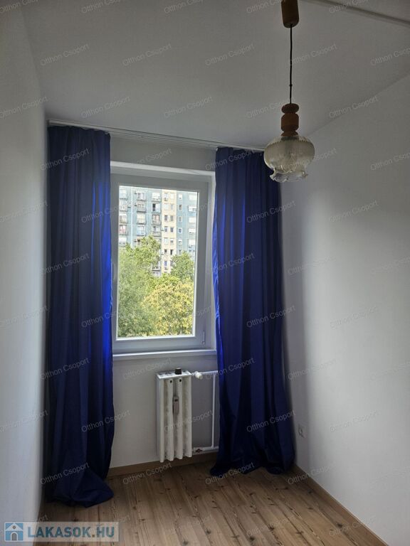 Kiadó a békásmegyeri piac mellett, a Bálint György utca elején egy 3.emeleti, 57 négyzetméteres, 3 szobás lakás. Bútorozatlan és gépesítetlen (tehát hűtő- és mosógép nincs). A hálószobák egy belső parkra néznek, míg a nappali egy parkolóra, így nincs nagy autóforgalom.