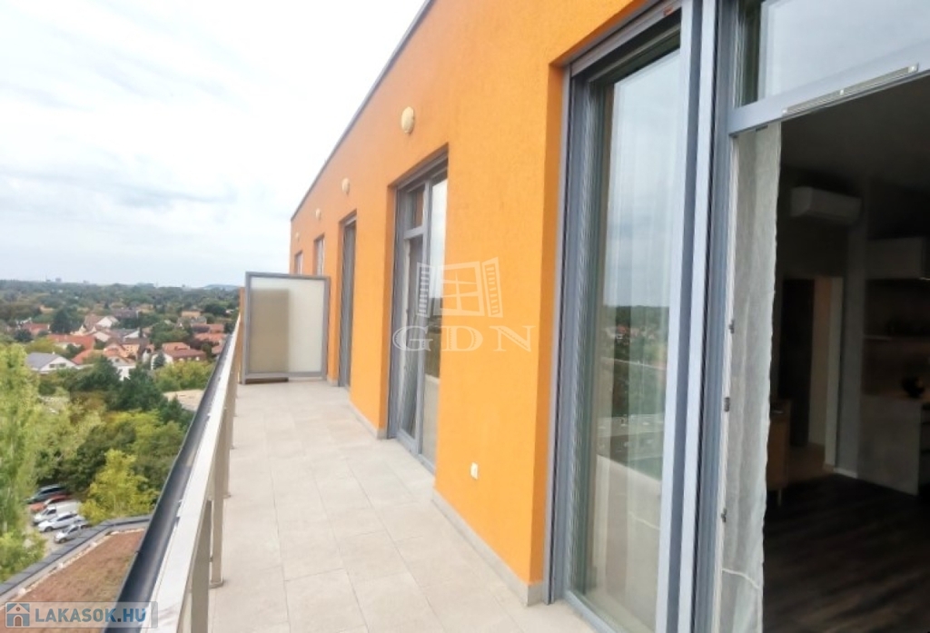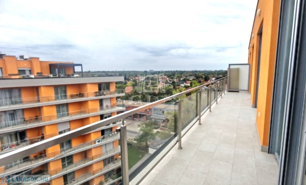 A lakáshoz tartozik egy tágas, 18 m²-es terasz, ahonnan szintén a gyönyörű panorámát élvezheti — minden helyiségből közvetlen kijárat vezet ide.