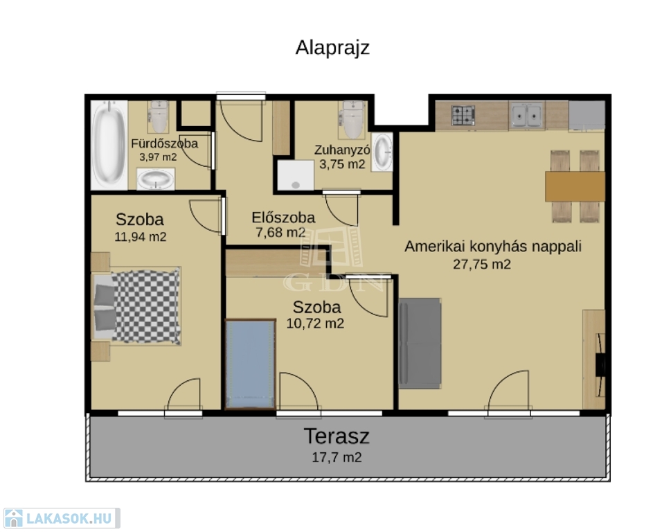 66 m²-es területével és 3 külön szobájával kiváló választás kisebb családok  vagy párok  számára.