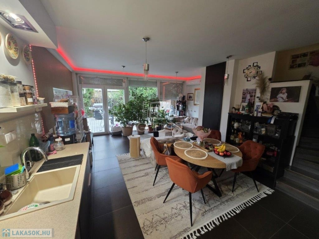 Kiadó, 3 szintes, 95 m²-es, teljesen felújított ikerházrész medencével és nagy kerttel, alacsony rezsi költséggel