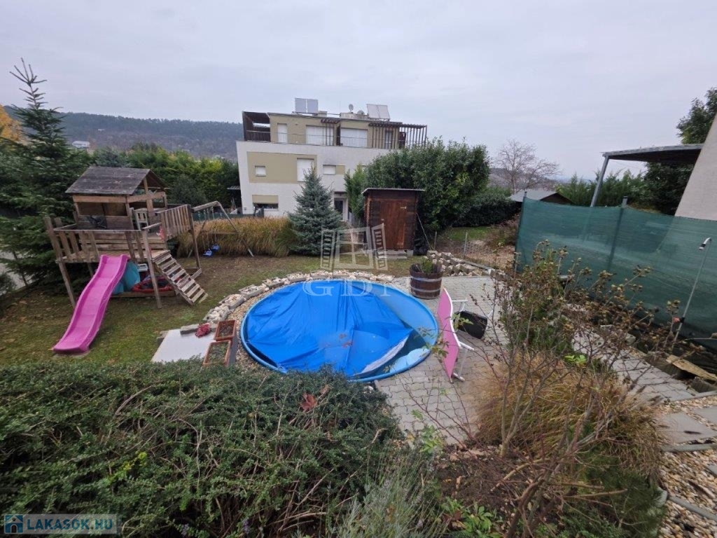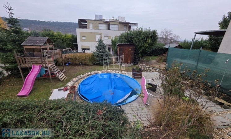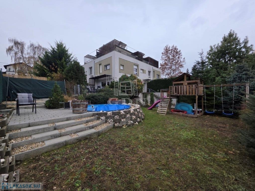 A saját telken medencével, kerti játszóvárral és kerti tárolóval!