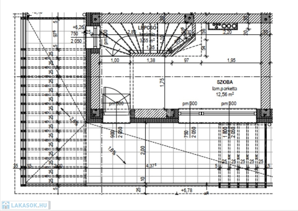 - felső szint: 2 db. szoba, fürdőszoba ( kád, wc, mosdó )