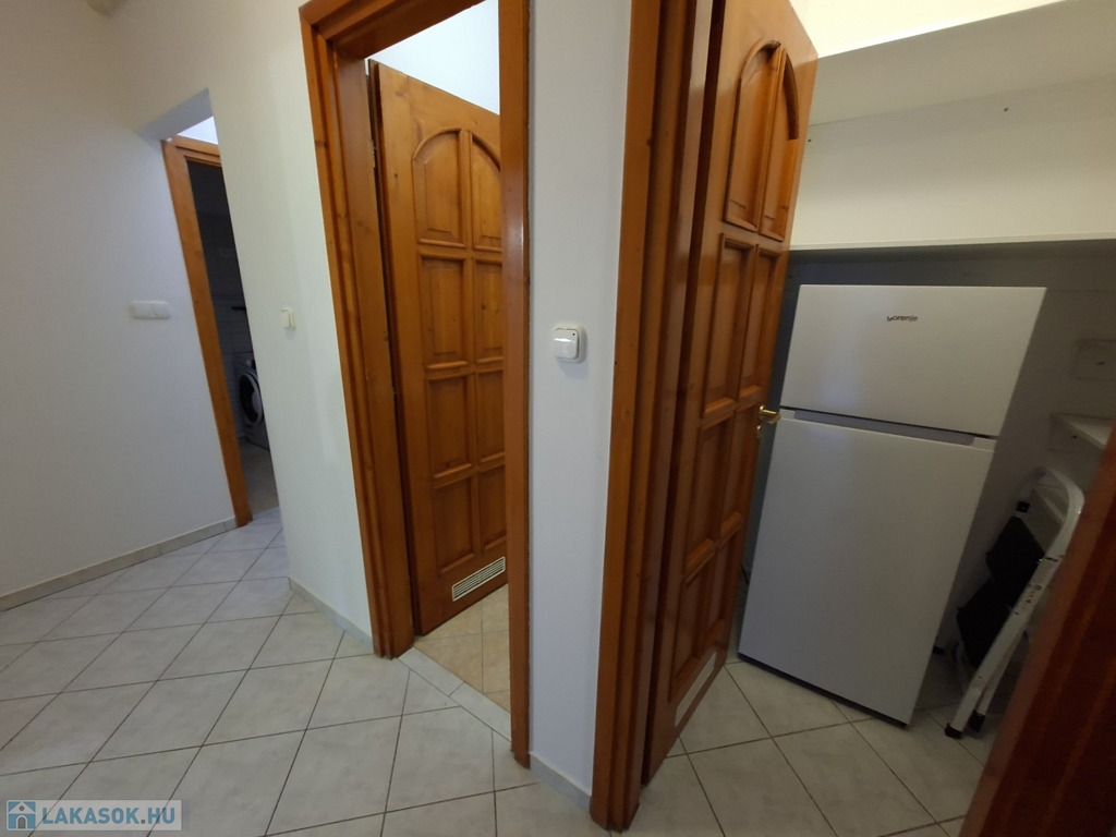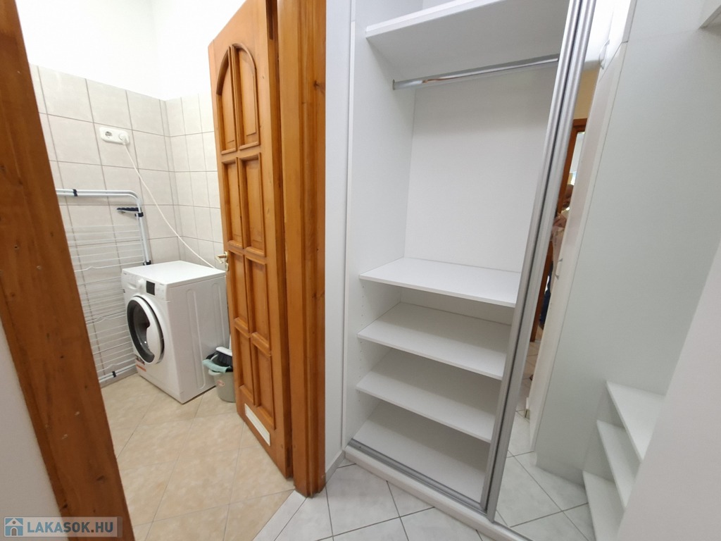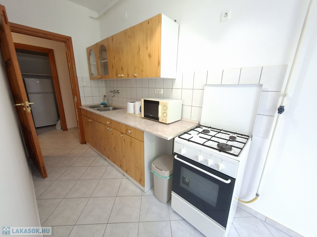 A Liszt Ferenc utcai 42 m2-es tégla építésű lakás szobája és étkező része bútorozatlan, de konyhabútora, nagy gardróbszekrénye és polcozott kamrája van. A társasházi, nagy kertre néző lakás klímával, riasztóval felszerelt és gépesített (gáztűzhely, cirkó, mosógép, kombi hűtő, mikró).