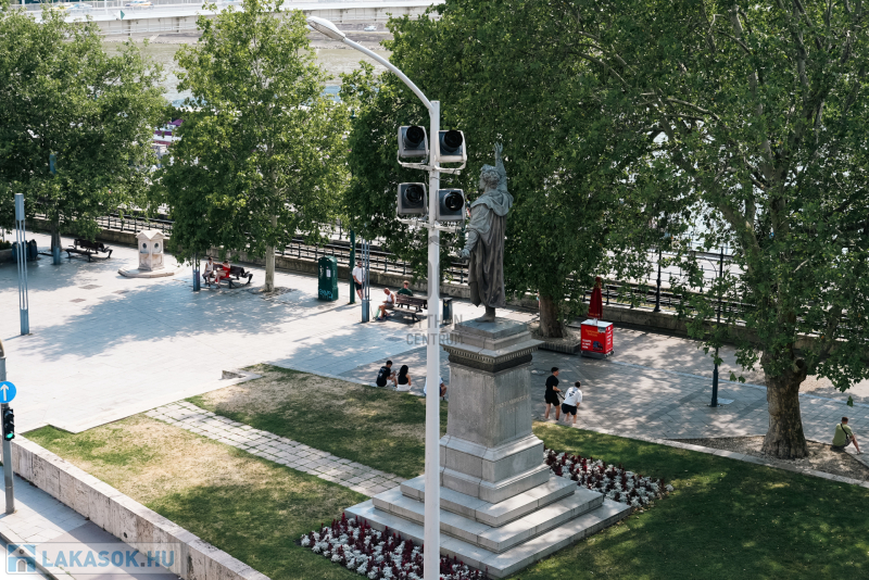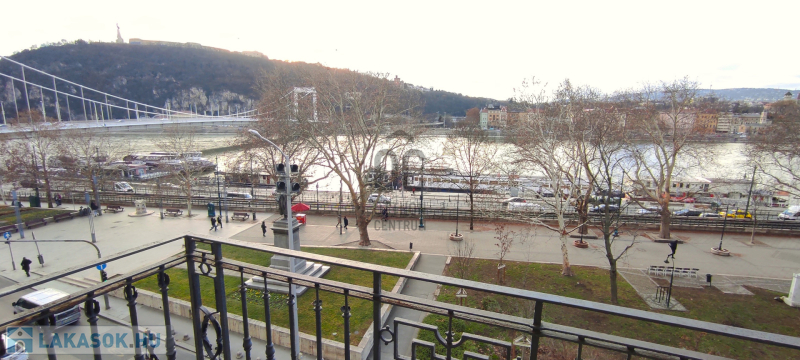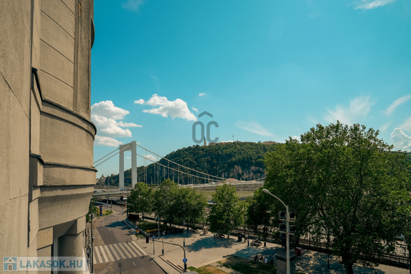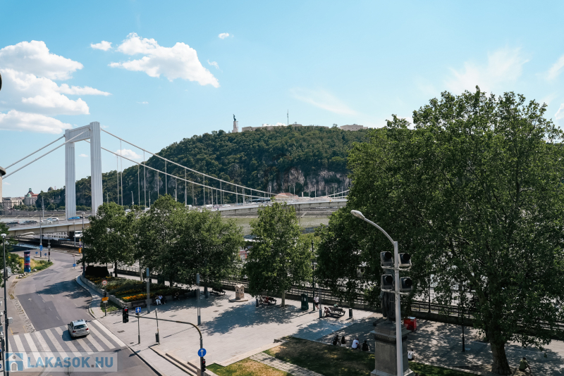 A belváros szivében, az Erzsébet híd pesti hídfőjétől néhány méterre, kiváló közlekedéssel, mégis távol a dugók zajától, zöld környezetben a Duna partján, egy igényesen felújított, 3. emeleti brutto 159 m2-es, 4 szobás, 2 fürdőszobás igazi polgári lakás, magas belmagassággal, szaunával és két erkéllyel keresi új lakóit!