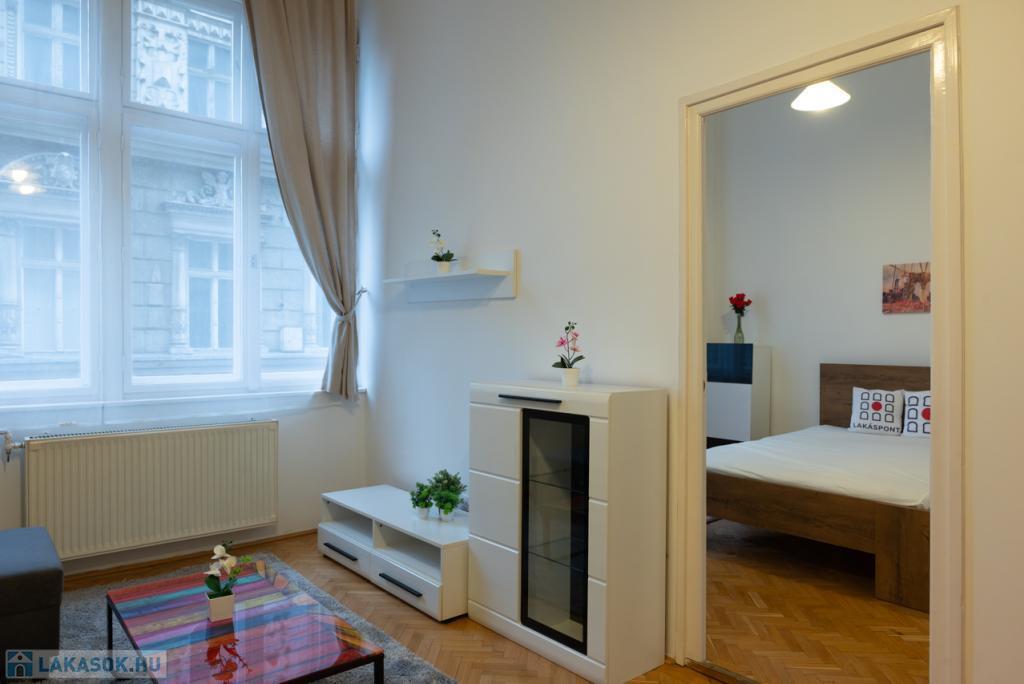 2 szobás (külön és egybe nyíló), 1. emeleti lakás a Váci utca régi, patinás részén hosszú távra kiadó.