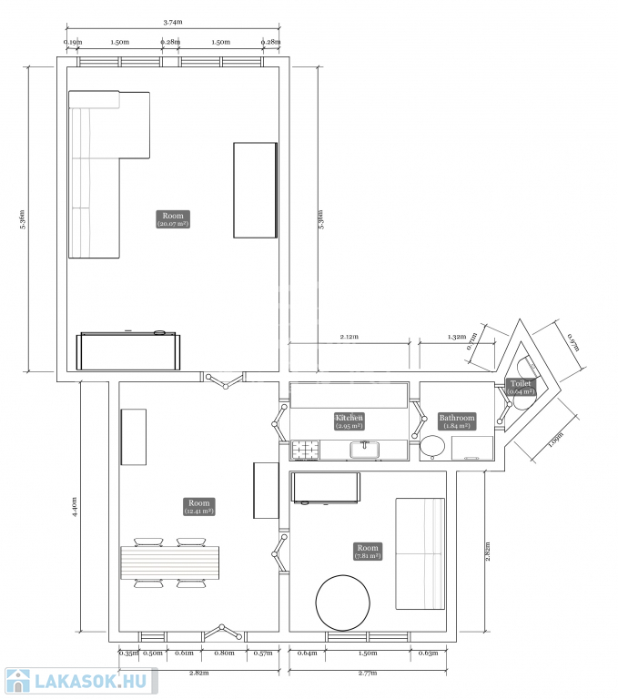 Az otthon 1+1 szobával rendelkezik, ideális lehet egyedülállók vagy kisebb családok számára.