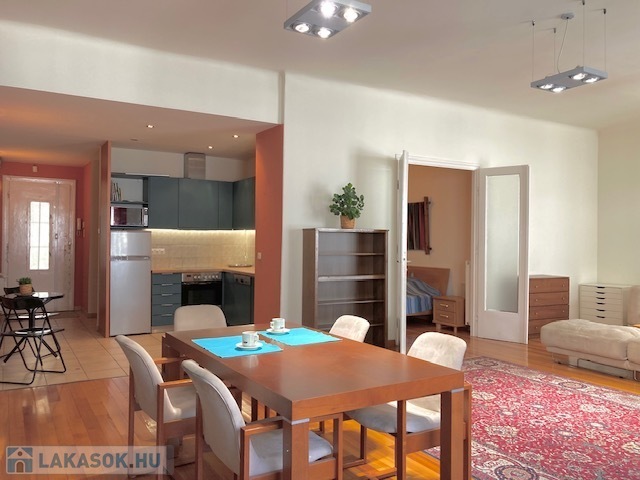 Budapest V. kerületében, a Duna-partnál, a belváros szívében hosszú távra kiadó egy 83 m²-es, 2 szobás, amerikai konyhás, világos és csendes, erkélyes lakás.