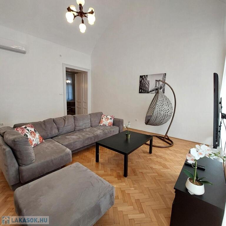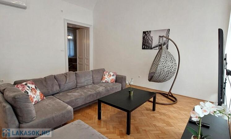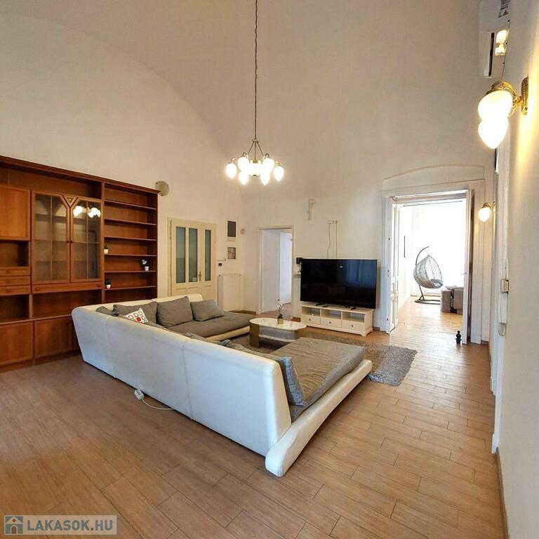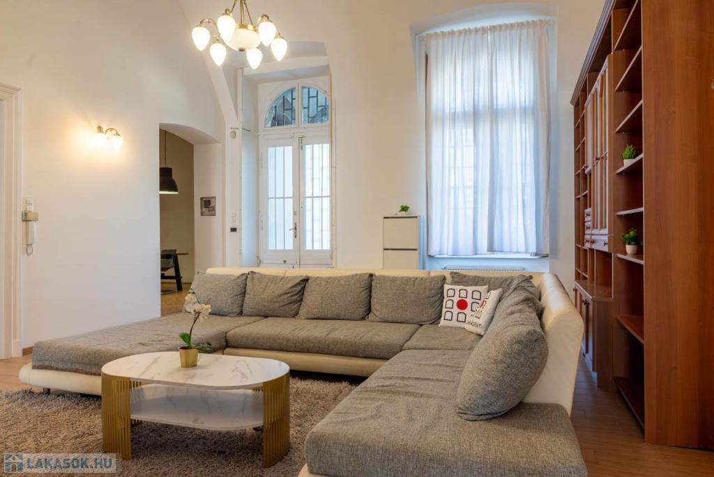 Budapest V. kerületében, a Váci utcában, a Fővám tér közelében hosszú távra (minimum 1 évre) kiadó egy igényesen felújított, napfényes, délkeleti fekvésű, 165 m-es, földszinti lakás.