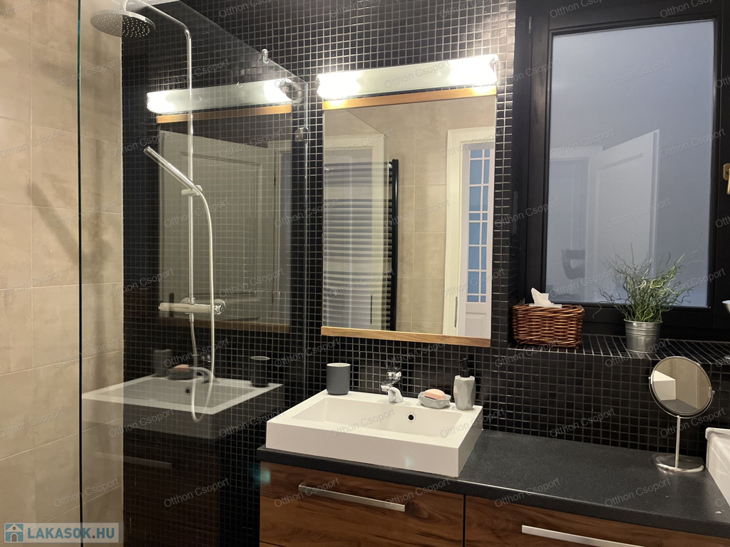 Az egyik hálószoba udvari, keletre néz, a másik háló és a nappali déli fekvésűek. A fürdőszoba zuhanyzós, a két WC közül az egyik külön helyiségben van.