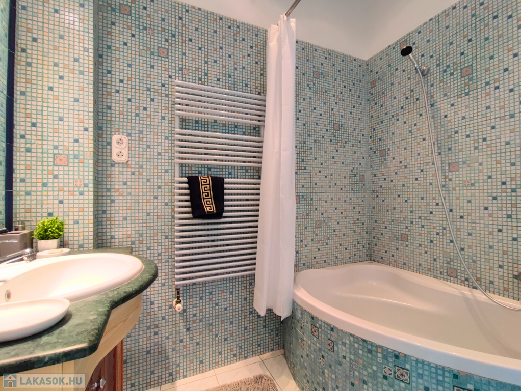 A lakás bútorozott, gépesített, légkondicionált, fűtése házközponti.