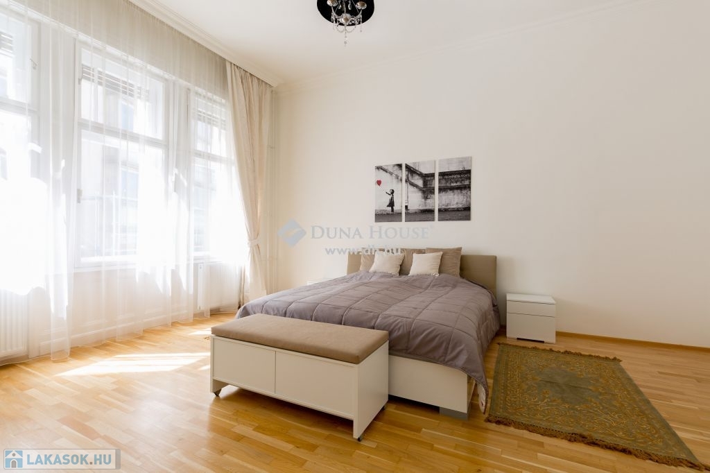 Nem csak egy újabb lakás, hanem ÉLETSTÍLUS ez a mottója a sikkes Bécsi utca egyik történelmi épületében lévő, exkluzív minőségben felújított, 86 m2-es lakosztálynak.A nagyvonalú, tágas terekkel, két hálószobával, nappali-étkezővel és teljesen felszerelt konyhával rendelkező, modern design bútorokkal berendezett lakás minden igényt kielégít.A teljes körű műszaki és esztétikai felújítás során prémium minőségű anyagok és berendezések kerültek beépítésre, de nagyon fontos szempont volt a lakás polgári miliőjének megőrzése. Ablakaiból pompás kilátás nyílik a Szervita tér 21. század építészeti eklektikájára. A szobák légkondicionálóval felszereltek, a hatalmas beépített szekrényekben mindennek helyet lehet találni. A környék közlekedése, infrastruktúrája kiváló,.Pár perces sétával elérhetőek a Metró vonalak és a történelmi belváros teljes gasztronómiai, turisztikai kínálata. A közös költség tartalmazza a víz- és gázfogyasztást , valamint az internetet.Elsősorban hosszú távra /1 vagy több évre/ kiadó, 2 havi bérleti díjnak megfelelő kaució és egyhavi bérleti díj megfizetésével vehető bérbe.Egy évnél rövidebb bérleti idő esetén a havi bérleti díj 2700 Euro All inclusive.*****************************************************************************************************************************Premium apartment for long term rent in Servita Square***Not just another apartment, but a LIFESTYLE is the motto of this 86 m2 suite, exclusively renovated in a historic building on the chic Vienna Road.With generous, spacious living spaces, two bedrooms, a living-dining room and a fully equipped kitchen, this apartment is furnished with modern design furniture to meet all your needs.The complete technical and aesthetic renovation has been carried out using premium quality materials and fittings, but with a strong emphasis on maintaining the apartments bourgeois ambience.The windows offer a magnificent view of the 21st century architectural eclecticism of Szervita Square.The rooms are air-conditioned and there is space for everything in the large built-in wardrobes. The area has excellent transport connections and infrastructure, with the Metro lines and the historic city centre with all its gastronomic and tourist attractions within a few minutes walk.The common cost include water, gas and internet.Available for rent mainly for long term /1 or more years/, with a deposit of 2 months rent and one months rent.For rentals of less than one year, the monthly rent is 2700 Euro all inclusive.