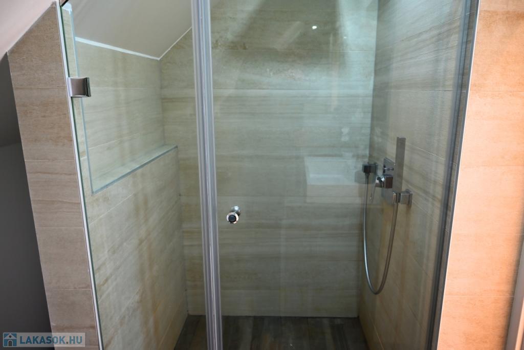 Fürdőszoba: esztétikus burkolatú, zuhanyzós, WC-vel