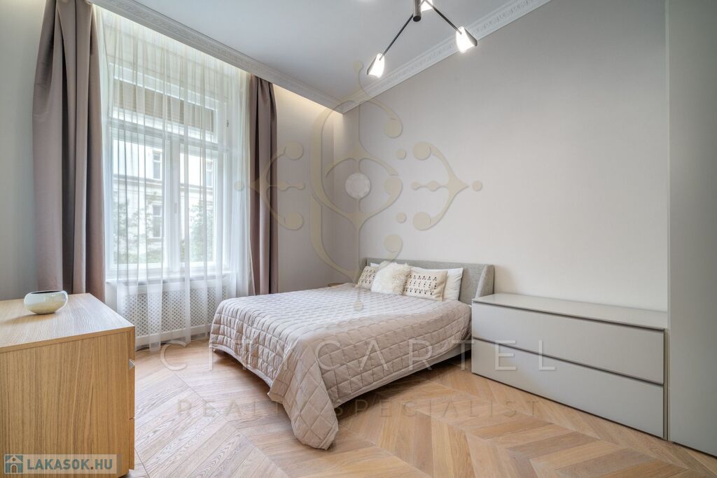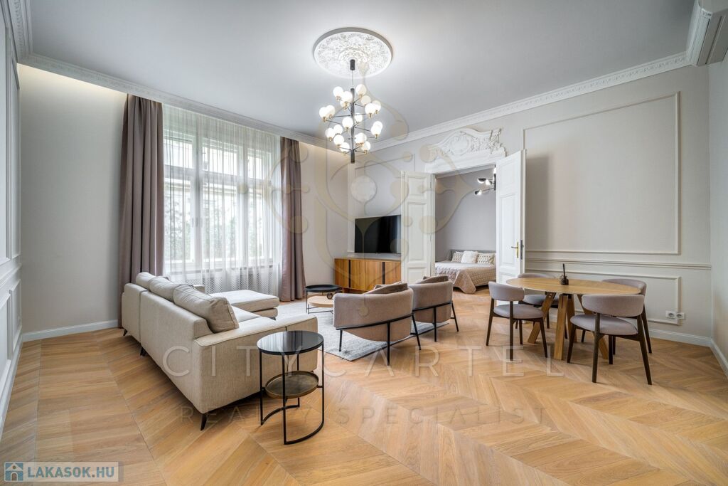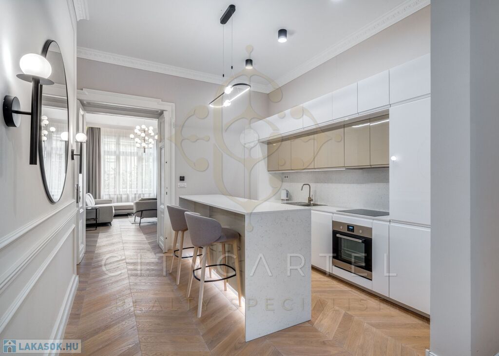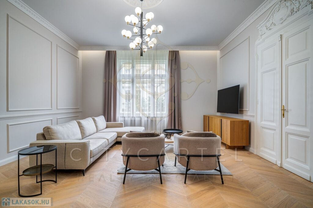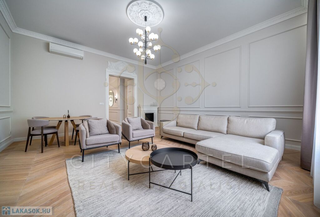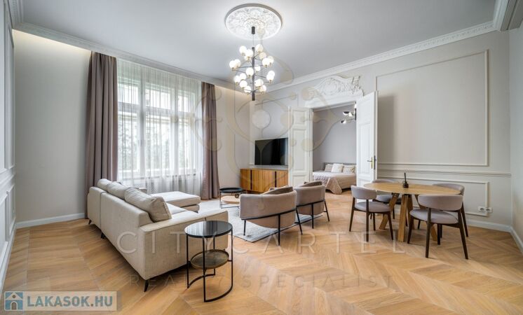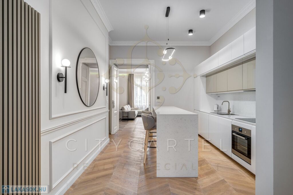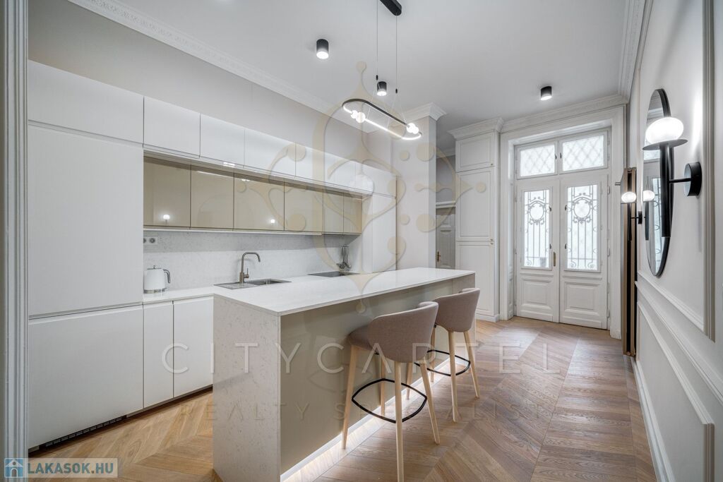 Budapest egyik legkeresettebb, történelmi belvárosi utcájában kínáljuk bérbeadásra ezt a 105 nm-es, teljes körűen felújított, luxus kivitelű lakást, amely minden részletében az igényességet és az időtálló eleganciát képviseli.