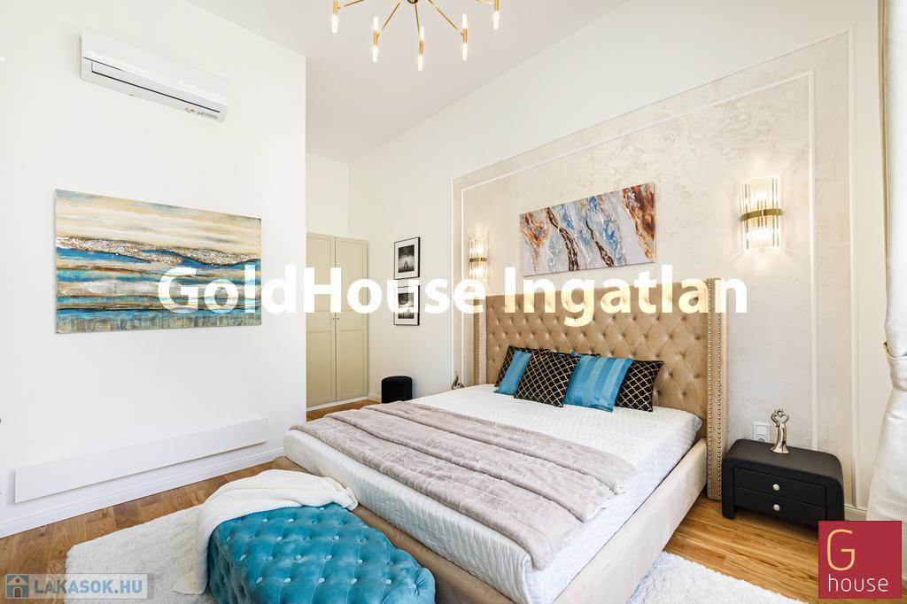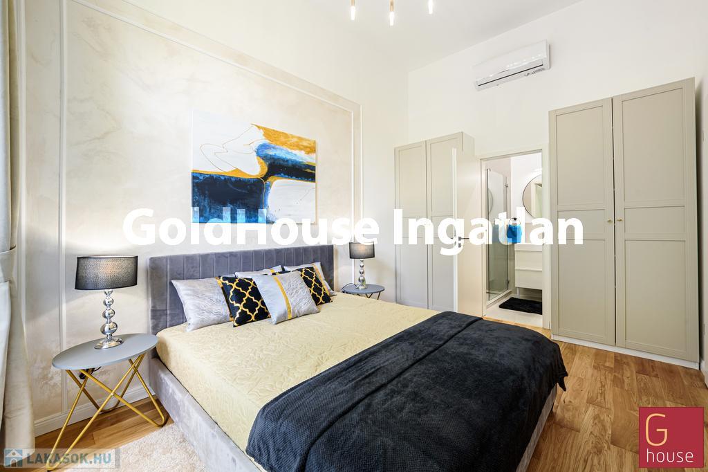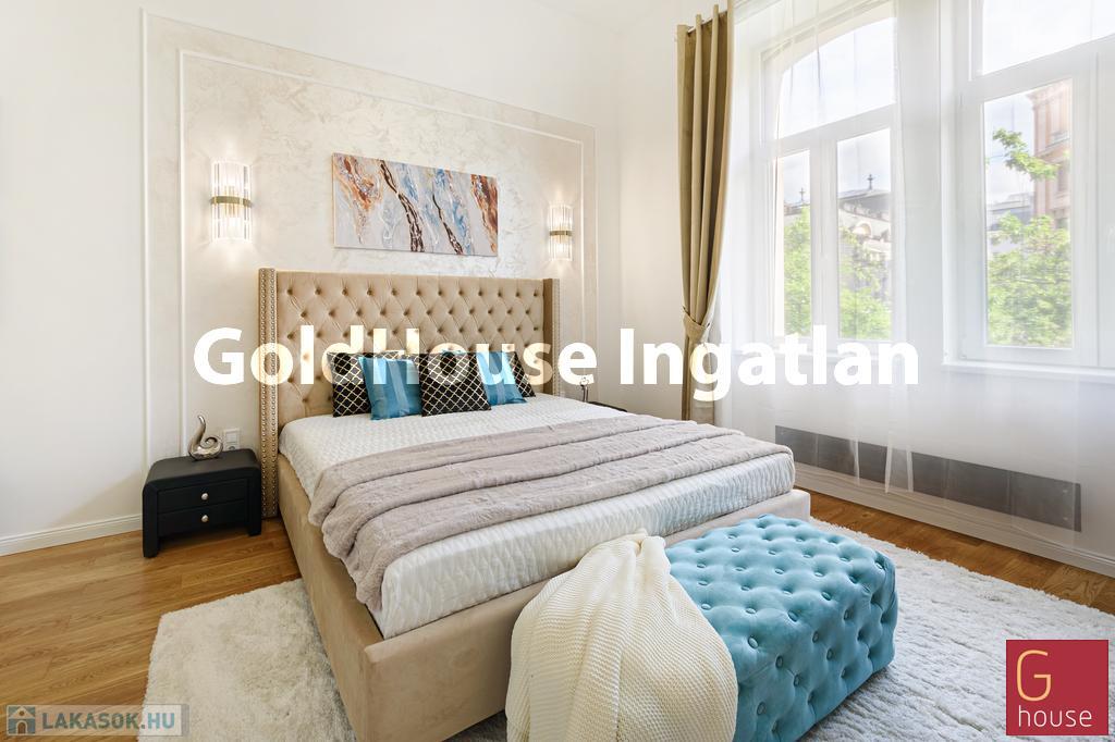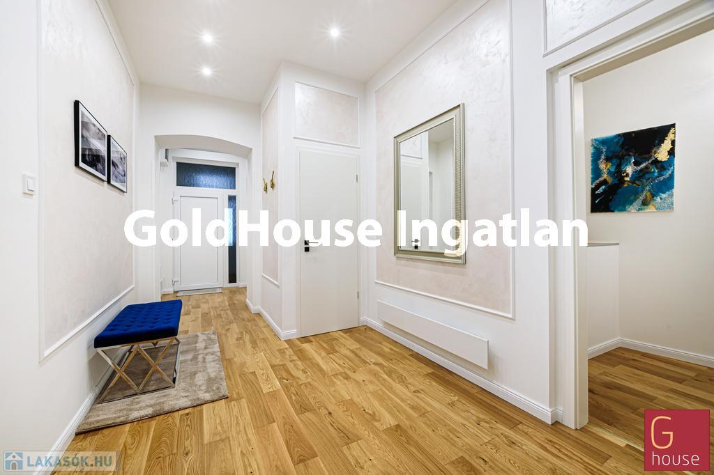 Az ingatlan belsőépítész által egyedi design megoldások alkalmazásával átépített belvárosi, nagypolgári, nagy belmagasságú 3.5 szobás (1 nappali, 3 külön bejáratú hálószoba) amerikai konyhás, 2 fürdőszobás, klimatizált, cirkófűtéses lakás.