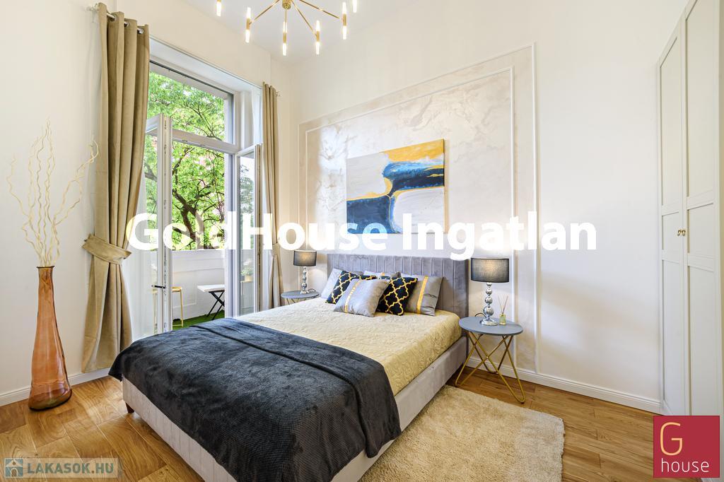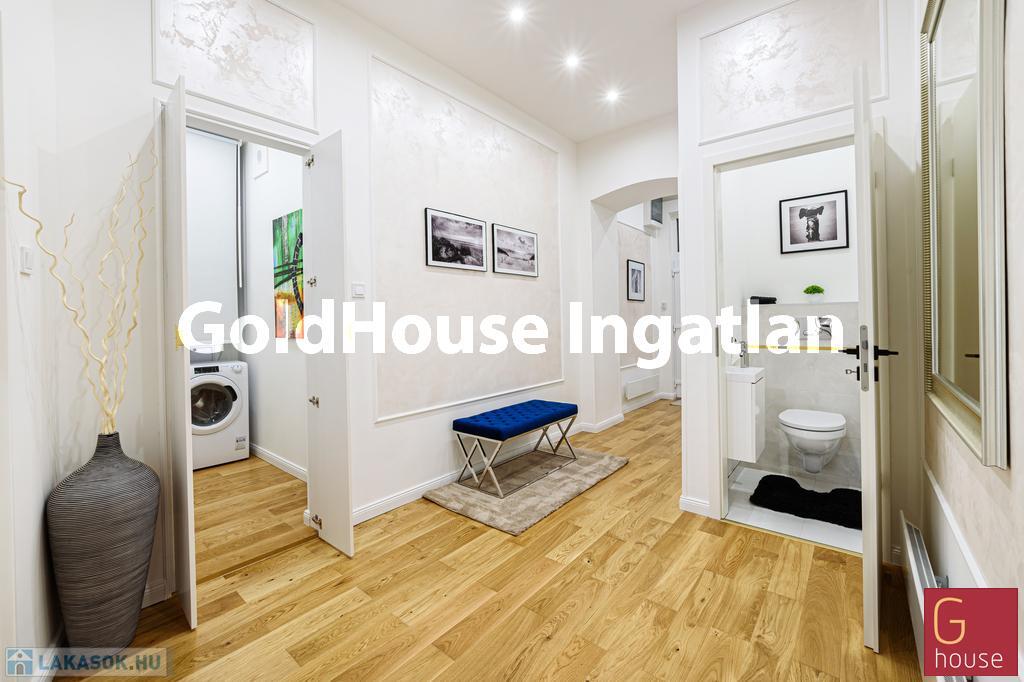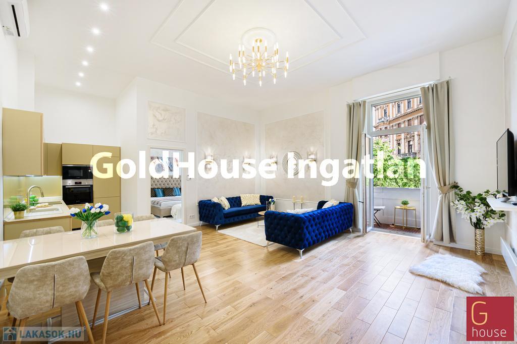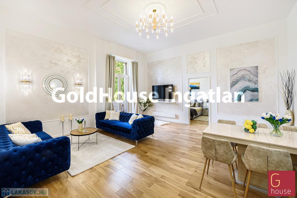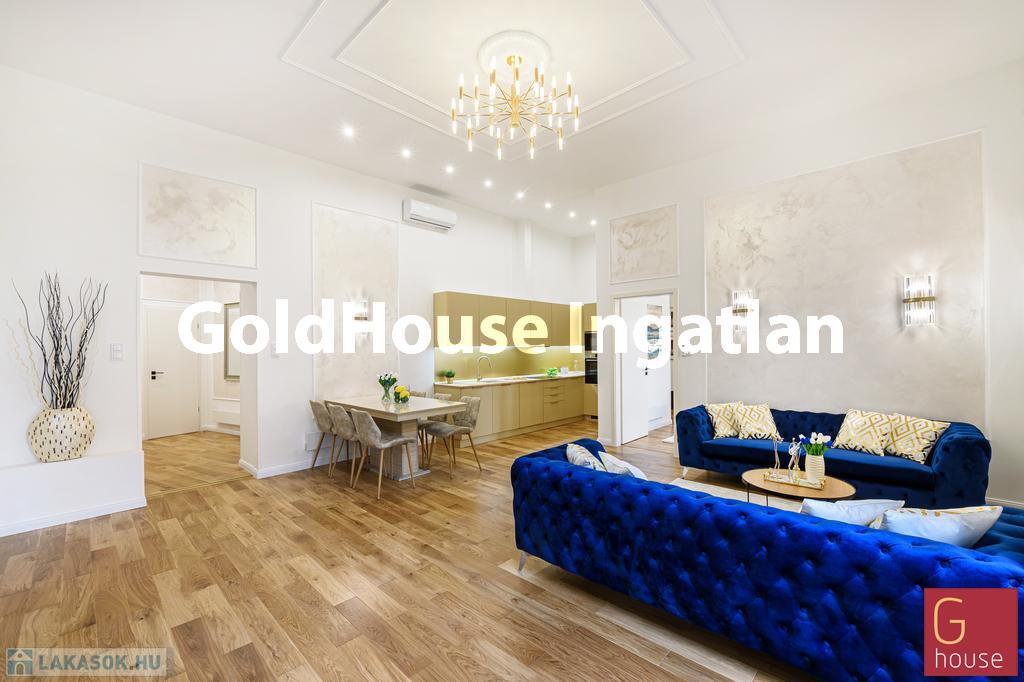 Az ingatlan belsőépítész által egyedi design megoldások alkalmazásával átépített belvárosi, nagypolgári, nagy belmagasságú 3.5 szobás (1 nappali, 3 külön bejáratú hálószoba) amerikai konyhás, 2 fürdőszobás, klimatizált, cirkófűtéses lakás.