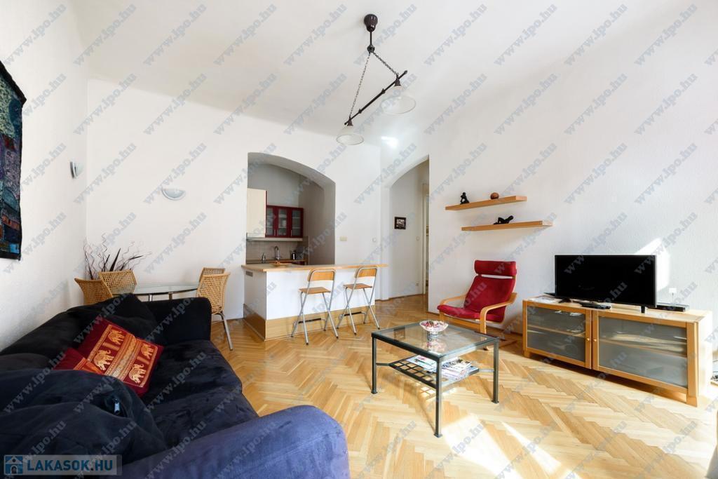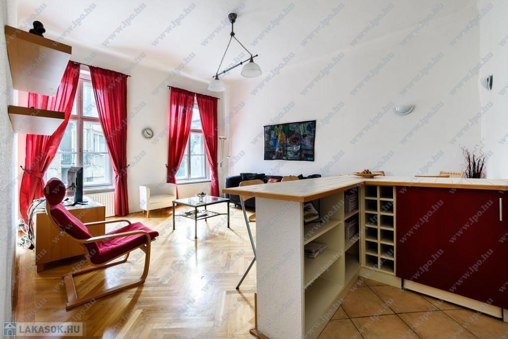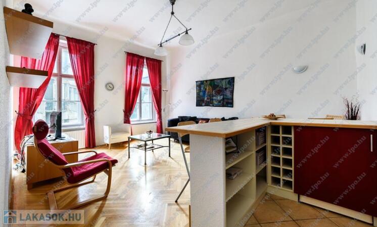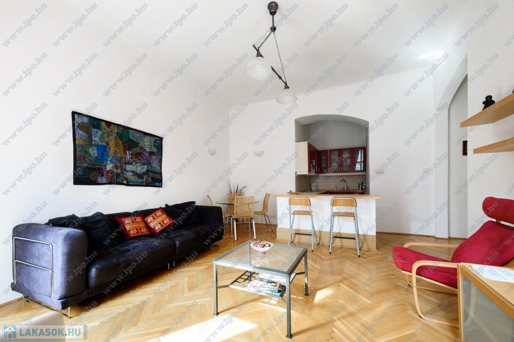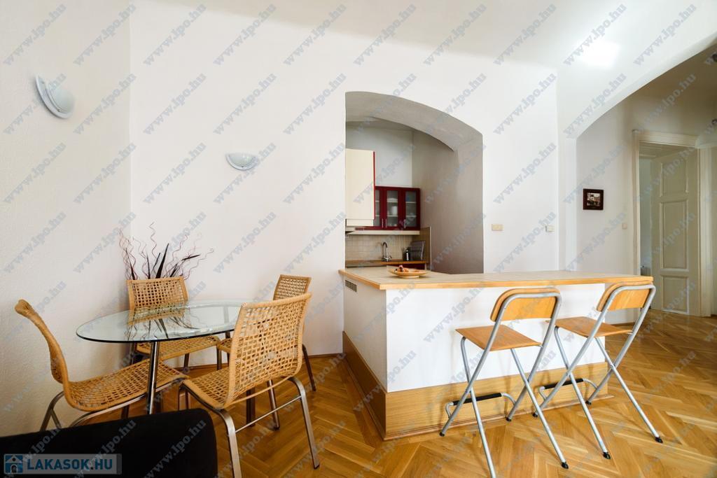 Kiadó 16 nm-es SZOBA Budapest, VI. kerület Hajós utcában minimum 6 hónapra egy szépen felújított 65 m2-es, amerikai konyhás nappalis + 2 hálószobás, utcai nézetű, 2. emeleti lakás.