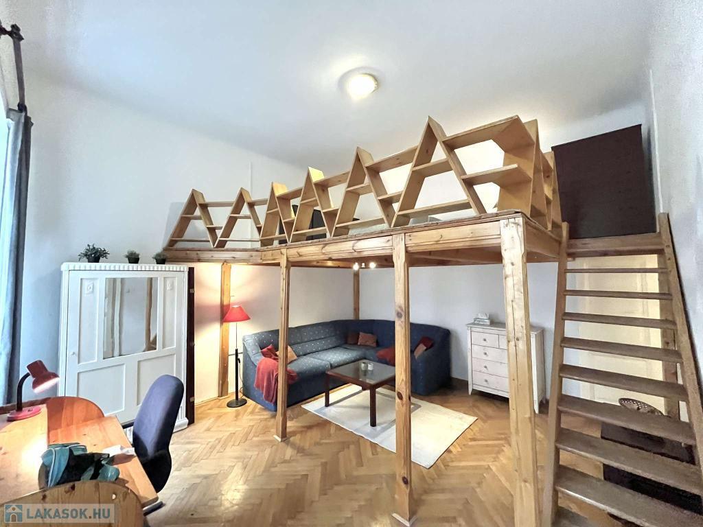 VI.kerület-ben NYUGATI közelében, kulturált környéken, az Eötvös utcában, PATINÁS, JÓL KARBANTARTOTT épületben II. emeleti 44 m2-es galériás jó hangulatú kislakás kiadó november 12-től bútorozottan, gépesítve!