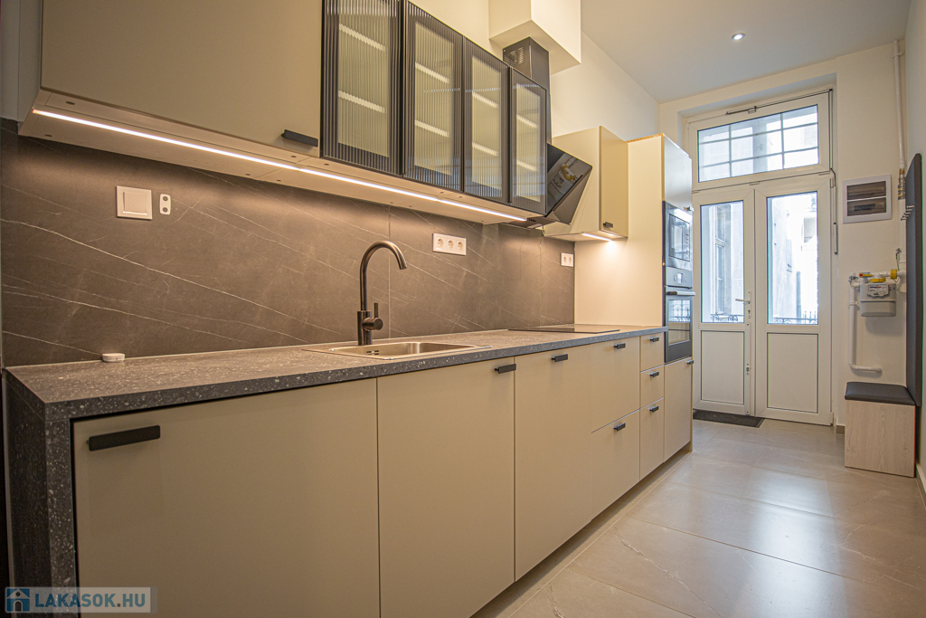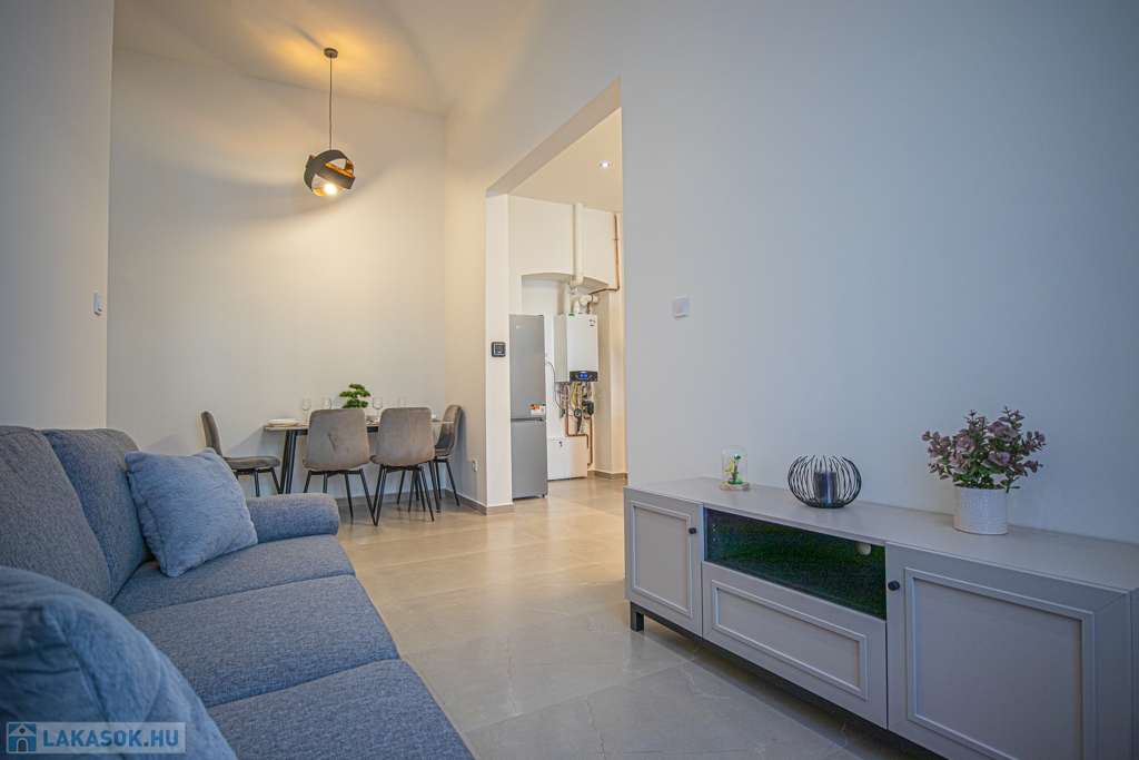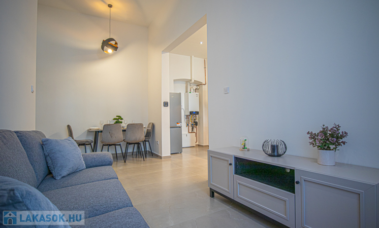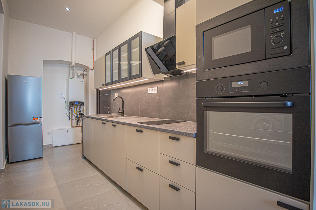 A lakás teljes felújítása most fejeződött be így a leendő bérlő veheti először birtokba. A teljes villamos, víz, gázrendszer cserélve lett, a fűtést padlófűtéses kondenzációs gázkazán biztosítja, a lakásba hang és hőszigetelt nyílászárók, gépesített konyhabútor (mosogatógéppel) került beépítésre.