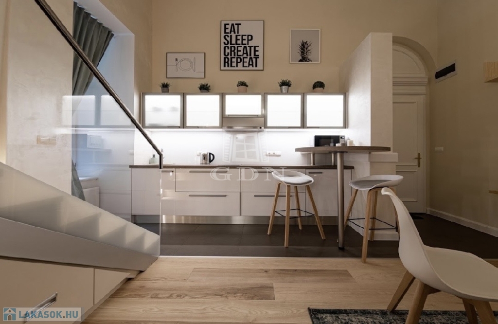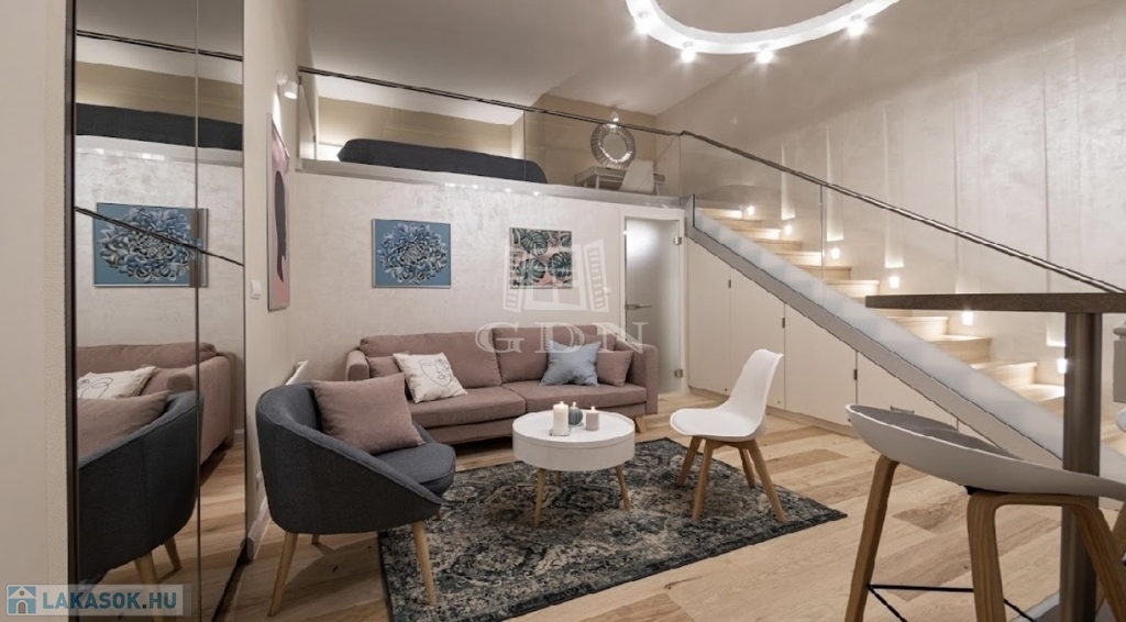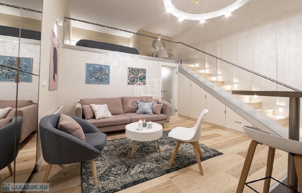 Kiadó az Ó utca központi, mégis csendes részén egy 34 m²-es, belső állógalériás ingatlan, amely lakásként és irodaként egyaránt kiválóan használható.