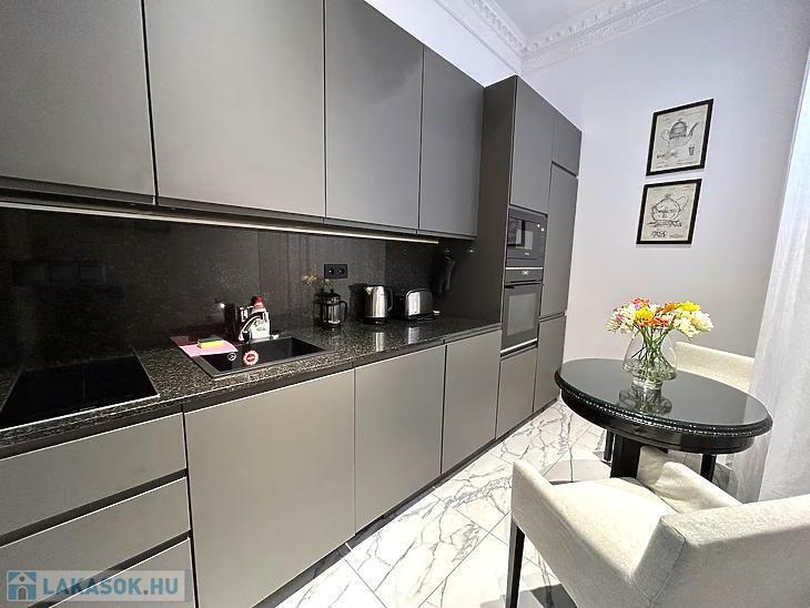 Budapest VI. kerületében, a Dessewffy utca 21. szám alatt kiadó egy 46 m²-es, 1. emeleti, teljes körűen felújított, prémium minőségben berendezett és gépesített lakás.