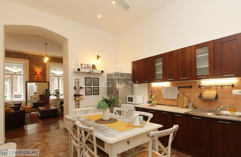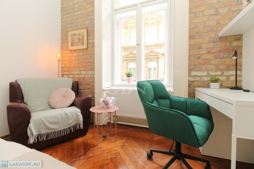 Az ingatlan Terézváros központi részén található. A lakás egyediségét a tradicionális polgári hangulat a finom belsőépítészeti megoldások és az egyedi lakberendezői munka teszi izgalmassá.