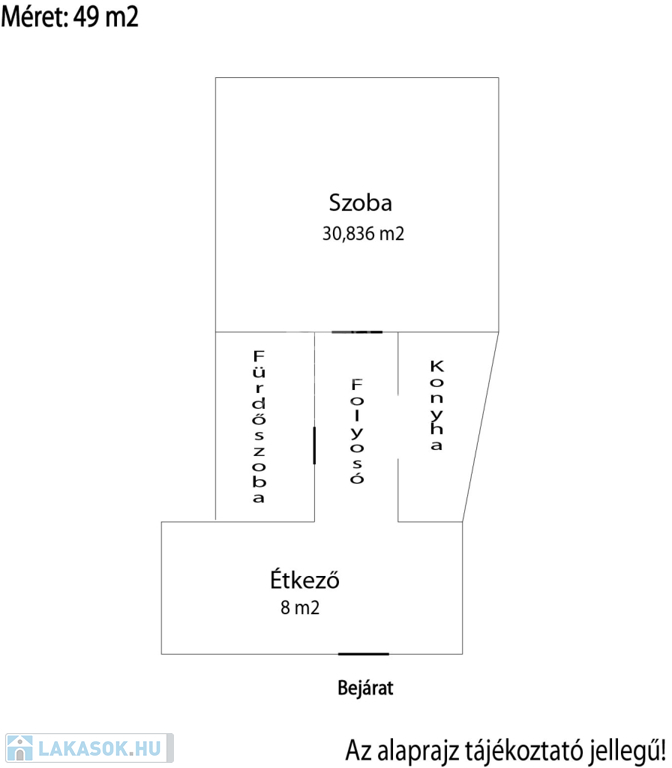 A lakás a második emeleten helyezkedik el, belépve egy étkező részbe érünk, ahol beépített szerkények állnak a rendelkezésünkre.