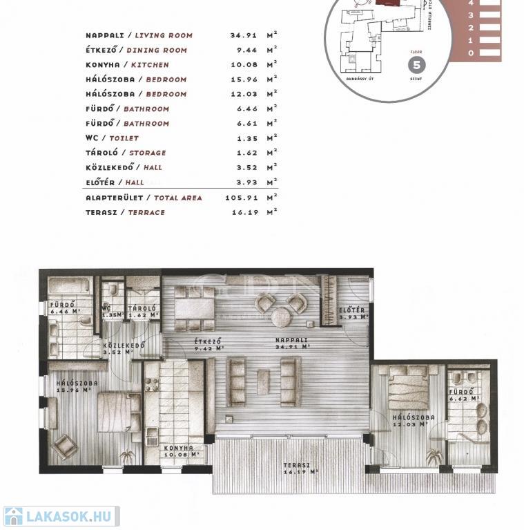 KIADÓ az Andrássy úton az Avenue Gardens épületében egy 105 m2-es ERKÉLYES LUXUS LAKÁS havi 1800 euro + áfárért.