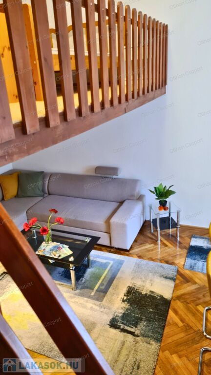 A lakás elosztása praktikus: nagy nappali + teljes értékű galéria hálórésszel, ahol kényelmesen fel lehet állni, így valóban jól használható külön hálóként. Ideális egy fő vagy egy pár számára.