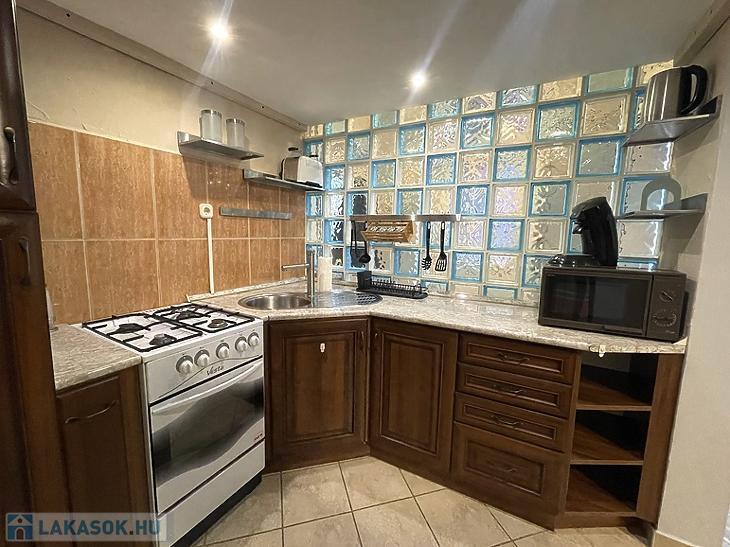 Teljesen bútorozott, gépesített, felszerelt konyhával