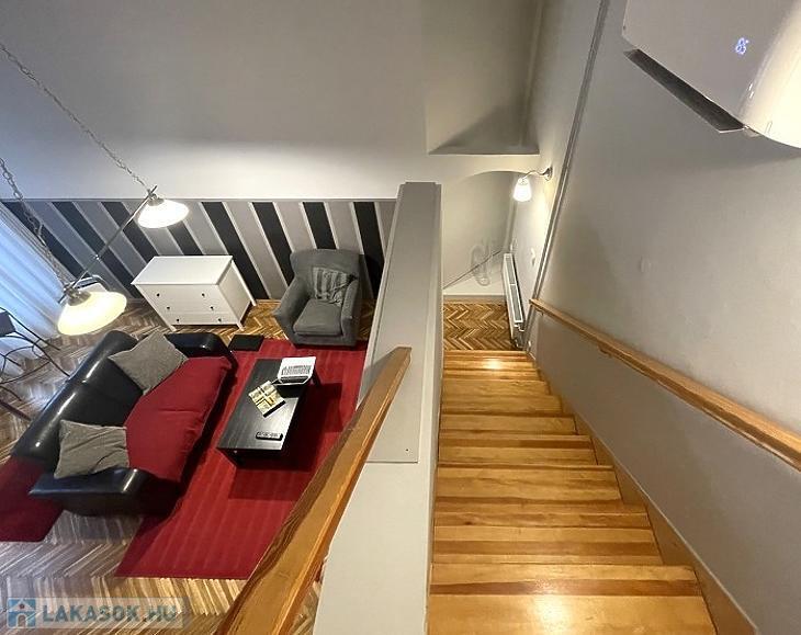 Budapest szívében, a VII. kerület egyik legkedveltebb részén, a Király utcában kiadó egy 1. emeleti, világos, 34 m²-es, bútorozott és teljesen felszerelt garzonlakás állógalériával.