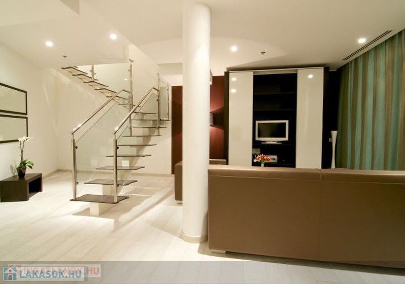 Budapest központjában a Blaha Lujza térnél, diplomáciai helyszínek közelében (Andrássy út, Stefánia út) múlt század elején épült nívósan felújított 5 csillagos palotában minimál stílusú, belső kétszintes luxuslakás hosszabb-rövidebb távra is kiadó (akár 1 hónap is). A 157 m2-es New York Suite lakosztály áll az aló szinten egy amerikai konyhás nappali-étkezőből, a felső szinten pedig 3 hálószobából (királyi ágymérettel), 2 fürdőszobából és egy gardrob szobából. A konyha olasz stílusban berendezett, teljesen felszerelt (hűtő, mélyhűtő, mikrohullámú sütő, kávé- és teafőző gépek, edények, tányérok, evőeszközök, poharak). A lakás légkondicionált, található benne egy nagy síkképernyős TV, műholdvevő, internetkapcsolat, egy laptop méretű széf, hajszárító és saját telefonvonal. A bérleti díj tartalmazza a heti kétszeri házvezetést, a spa használatát (úszómedence, gőzfürdő, szauna, fitnesz terem) és az állandó Wi-Fi elérést. Igénybe vehető az épület étterme, kávézója, szalonja, éjjeli bárja és recepciója.