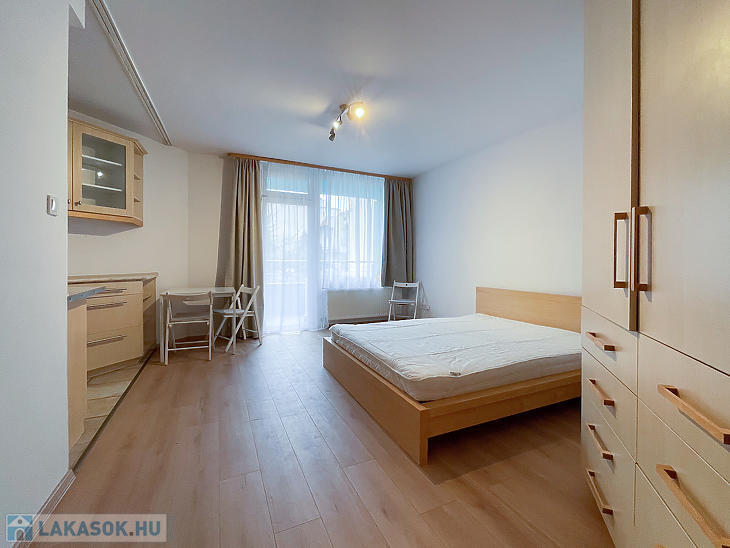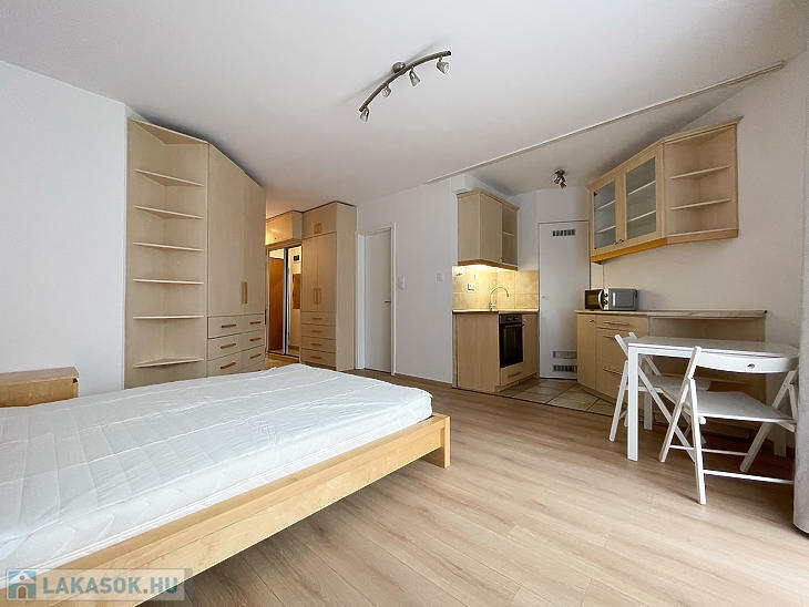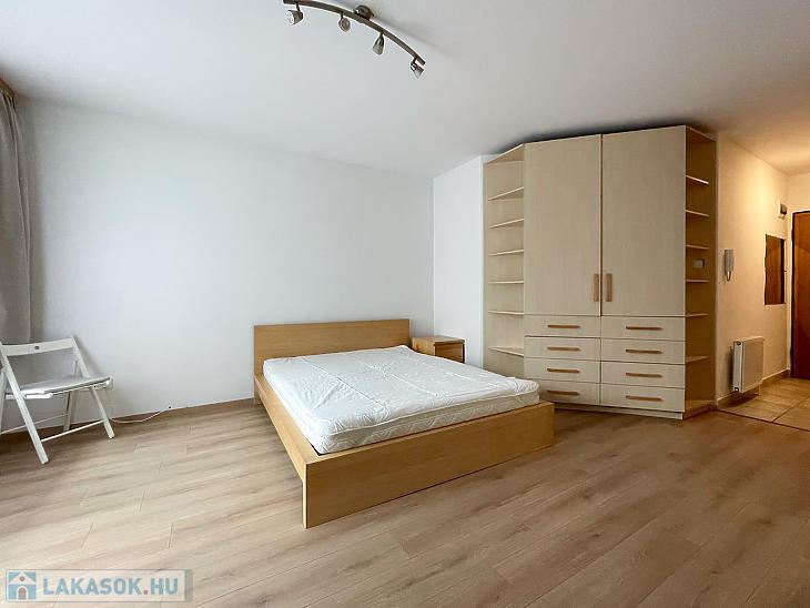 Az ingatlan egy szobás, kádas fürdőszobával és kamrával rendelkezik, illetve több beépített ruhásszekrény is található a lakásban.
